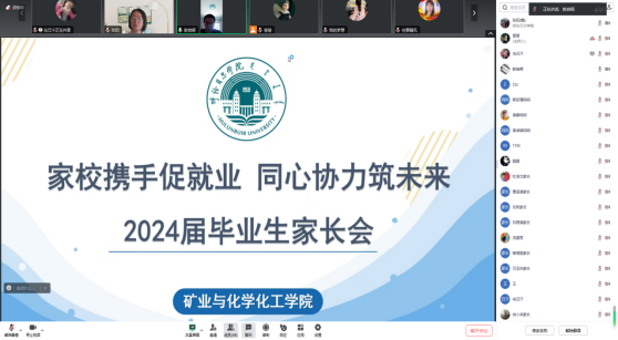 为了帮助毕业生家长全面了解就业形势,形成家校促就业的合力,帮助毕业生更加充分更高质量就业,4月13日,公司召开了“家校携手促就业,同心协力筑未来”线上家长会。公司党总支书记张阳、副书记敖岩辉,2024届毕业班辅导员庞明慧及全体毕业生家长参加,会议由庞明慧主持。