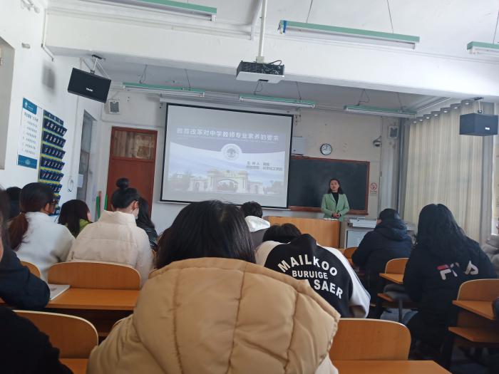 4月17日上午,化学化工公司在知行楼219教室举办“教育改革对中学教师专业素养的要求”师范生教师教育专题讲座。此次讲座由公司化学专业高娃教师主讲,艾丽书记、相关专业教师及化学专业师范生一同聆听了讲座。