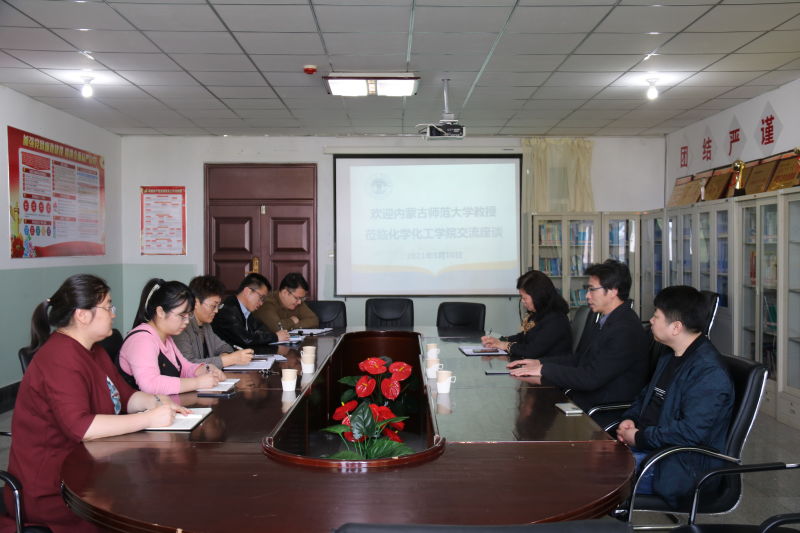 5月10日上午,内蒙古师范大学詹传郎教授应邀来化学化工公司进行学术交流,本次座谈会由化学化工公司经理白晓艳主持,科技处综合信息与成果管理科科长毕力格,化学化工公司副经理毕瑞金、各系部主任及部分专任教师参会。