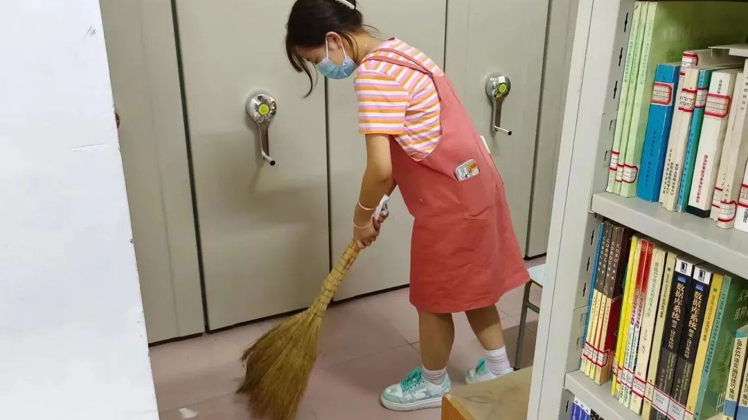 活动中,因图书馆墙皮脱落,志愿者们首先对脱落的墙皮进行清理,同时也对图书架两侧的过道进行了打扫;并对散落缠圈的电线进行整理,将电线整理整齐后放在指定地点。