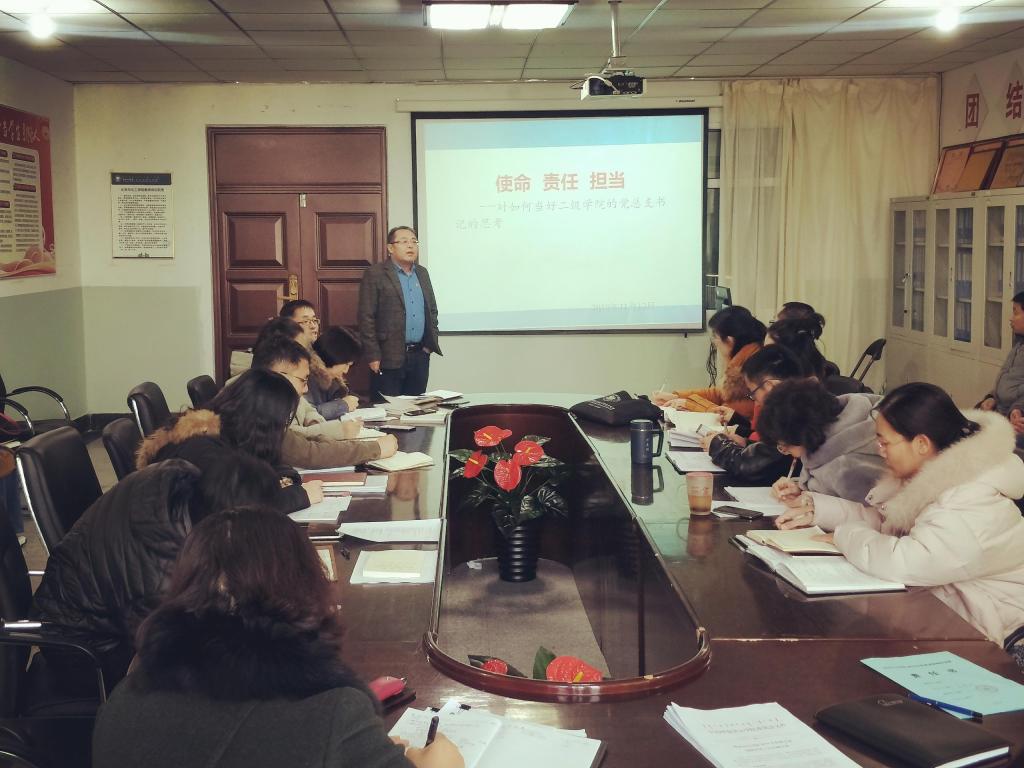 11月13日下午,在科技楼422会议室,在“不忘初心、牢记使命”主题教育中提高对“党委领导下的董事长负责制”的理解与认识,为解决班子建设中存在的认识不清理解不到位,进而党的领导力度不够坚强有力的问题,在充分调研的基础上,何平书记以“使命 责任 担当--对如何当好二级公司的党总支书记的思考”为题,为全体教职工上了一堂精彩的党课。