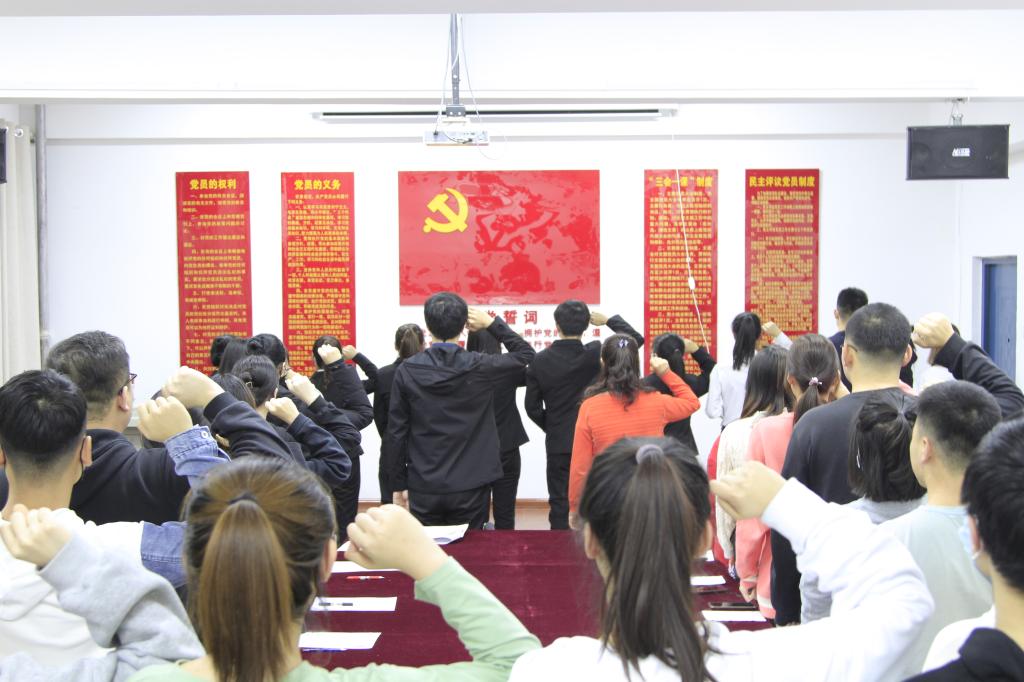 为进一步加强基层组织建设,进一步使党员端正思想态度,纯洁入党动机,让所有党员真正在思想上入党,行动上入党,不忘党的理想和目标,充分发挥先锋模范作用。化学化工公司员工党支部于2020年12月14日在艺术楼501室组织召开2020年下半年预备党员入党宣誓大会。会议由化学化工公司员工党支部书记孟庆永主持,化学化工公司党总支书记艾丽出席大会并作重要讲话。