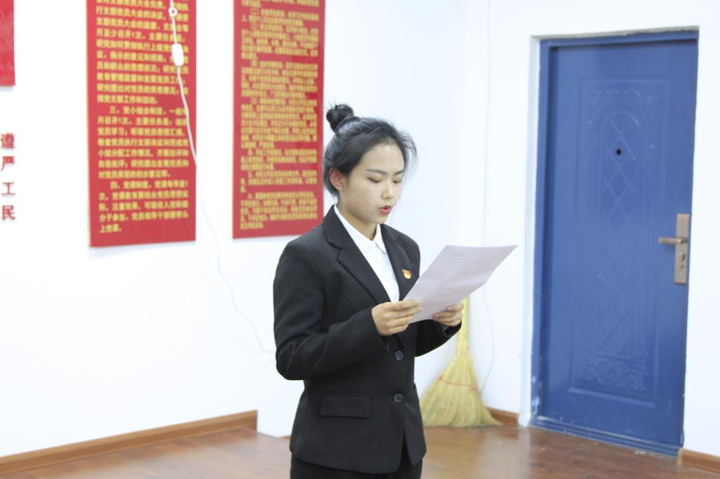 最后,党总支书记艾丽做重要讲话并提出要求,首先她代表组织欢迎各位新党员的加入,入党誓词不仅概括了党对党员的要求,也概括了党员对党的事业所承担的政治责任。希望在以后的学习、工作和生活中能够做到以下几点:一是大家要做刻苦学习、孜孜进取的模范,当前,我们正处于当今世界正经历百年未有之大变局,我国正处于实现中华民族伟大复兴的关键时期,要常怀一颗“不进则退”之心,刻苦求学,孜孜不倦,不断提高综合素质和能力;要勇于实践,勤于思考,奋而上进,用刻苦学习的奋发精神,树立共产党员的良好形象;二是要始终以党员的标准规范严格要求自己。不但在组织上入党,还要在思想上入党,做一名真正合格的共产党员,把坚定理想信念作为“全心全意为人民服务”的精神之”钙”,时刻自重、自省、自警、自励,才能清楚“我是谁、依靠谁、为了谁”;三是要在工作岗位中,以身作则,率先垂范,起先锋模范作用,入党后,就不能把自己当成一名普通的社会群众,而要通过不断学习和锻炼,使自己作为一名政治素质高,思想觉悟高,理论水平高,道德品质高的成熟的优秀分子,让周围的广大群众通过自身的所作所为,看到党的光荣形象和共产党员全心全意为人民服务的宗旨。