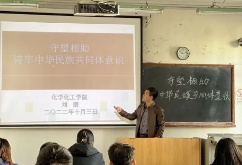 为深入贯彻落实习近平新时代中国特色社会主义思想、习近平总书记关于青年工作的重要思想和对内蒙古工作重要讲话重要指示批示精神,切实落实全区公司共青团“驻校蹲班”工作,2022年10月3日上午,化学化工公司2020级化学工程与工艺班于工程楼204教室组织开展驻校蹲班“守望相助铸牢中华民族共同体意识”主题教育党课。本次党课由化学化工公司党总支副书记刘朋主讲,2020级化学工程与工艺班全体员工参加。