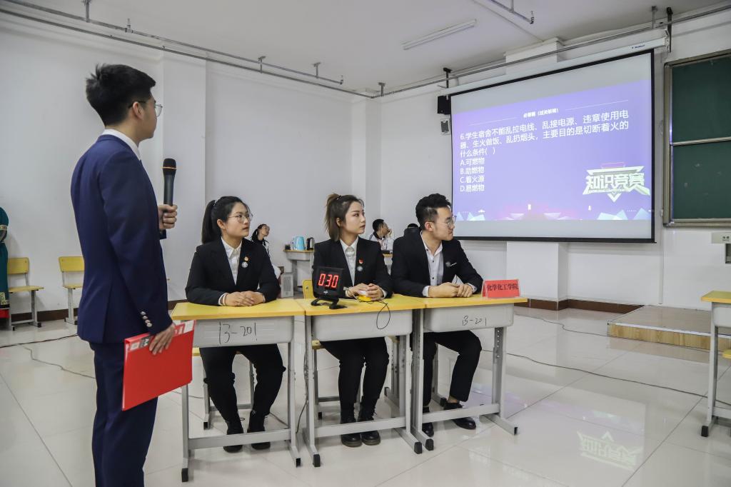 此次安全知识竞赛活动由员工工作处主办,校园安全管理处、校团委协办,化学化工公司承办。在经历了初赛与复赛的层层选拔之后,决赛于11月14日在崇文楼B201如期举行。出席本次活动的领导有员工工作处处长李健、校园安全管理处处长毛永强、员工工作处副处长白松林、员工工作处副处长王晓芳、校团委组织宣传部部长盛超、历史文化公司团学办公室主任赵毓敏、员工工作处宿舍管理中心柯杨、吴艳、工程技术公司指导教师庞明慧、历史文化公司指导教师湛楠、化学化工公司党总支书记何平、化学化工公司经理白晓艳、化学化工公司副书记刘朋、化学化工公司副经理姜作杰。