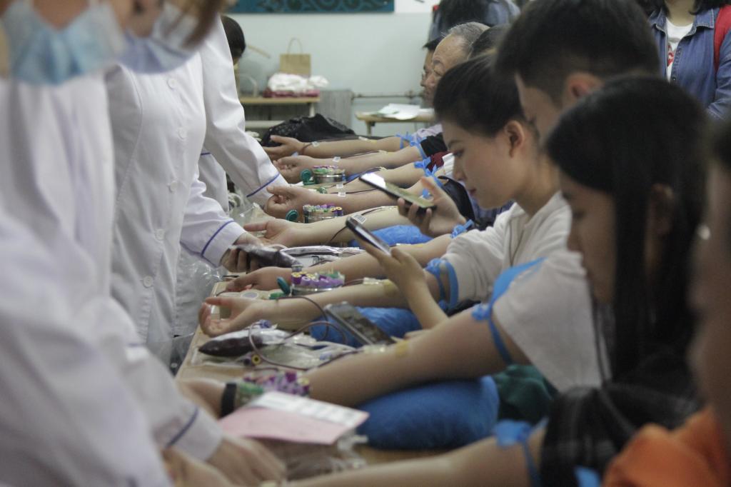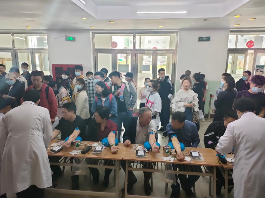 献血活动中,各公司领导老师带头献血,全校106名师生共无偿献血32100毫升。