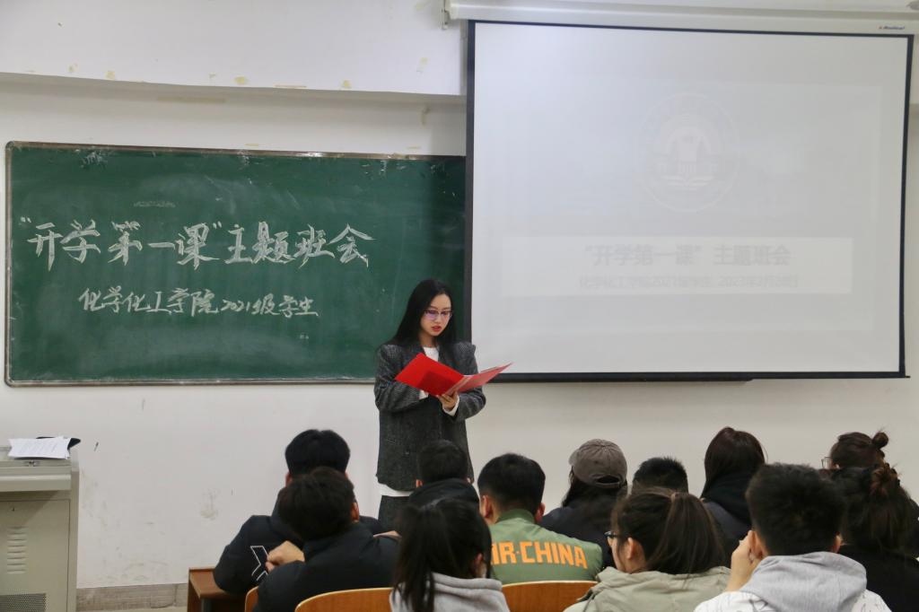 为让员工尽快进行自我调整,明确奋斗目标,进入最佳的学习状态,掌握自我防护和安全知识,2023年2月28日-3月2日,化学化工公司召开2022-2023学年第二学期“开学第一课”主题班会,会议由团学办公室主任张一帆、团学办公室副主任、团总支书记闫微、辅导员孟庆永、杨云晖主持,化学化工公司全体员工参加。