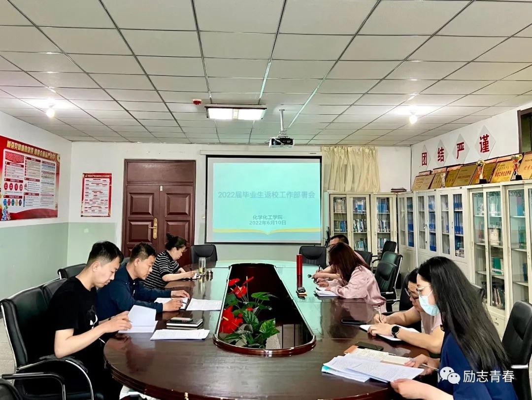 为进一步落实公司毕业生返校相关工作,坚决抓好返校疫情防控前期准备工作,6月10日,化学化工公司组织召开2022届毕业生返校工作部署会。会议由党总支副书记刘朋主持,党总支书记艾丽、团学办主任张一帆、辅导员孟庆永、杨云晖、2022届毕业生班主任刘晓非、李静参会。