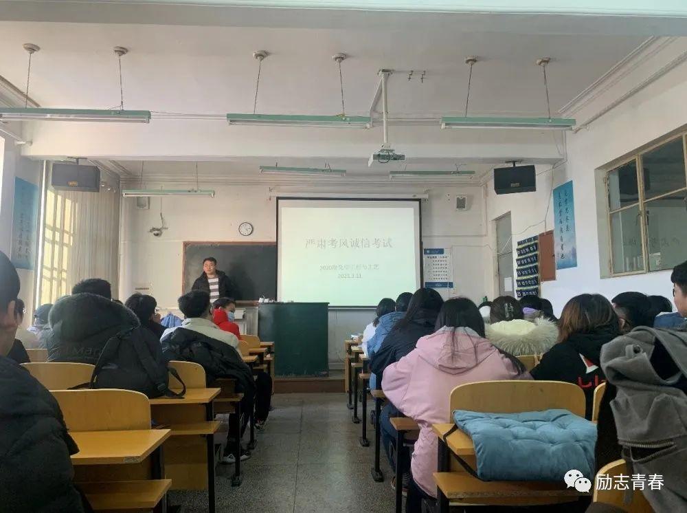 首先,班主任韩旭老师在会上要求同学们一定要诚信考试,端正学习态度,严肃考风考纪,应该以积极的心态和饱满的热情去面对考试,从而达到对知识的检验、巩固和提高。