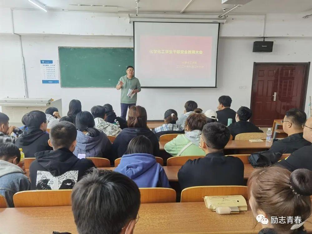 为提高员工的安全防范意识,增强自我保护能力,积极参与校园安全管理,共同创建文明、卫生、安全、和谐校园。化学化工公司于2021年9月26日在科技楼223召开“员工干部安全教育大会”。会议由团学办主任张一帆老师主持,全体员工干部参加。