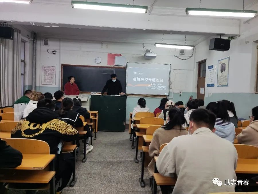 首先,各位老师详细具体的为同学们传达了疫情防控专题会议的相关精神,让同学们充分认识疫情防控形势的复杂性、严峻性,要求落实疫情防控常态化的各项措施,同时,围绕如何做好安全隐患排查、心理健康教育、员工思想引导、人身财产安全、网络安全等方面工作做了强调。
