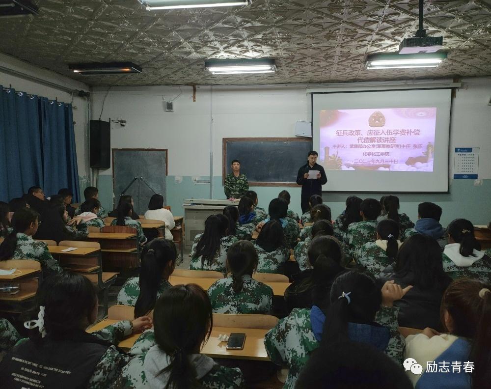 为了鼓励员工积极参与应征入伍,推进国防和军队现代化建设,化学化工公司于2021年9月30日晚七点在工程楼224开展了“征兵政策,应征入伍学费补偿代偿解读”讲座。本次会议由bw必威西汉姆联官网员工工作处武装部办公室(军事教研室)主任、民兵应急营营长张乐老师主讲,由化学化工公司团总支书记、辅导员主持,化学化工公司2021级全体员工参加了讲座。
