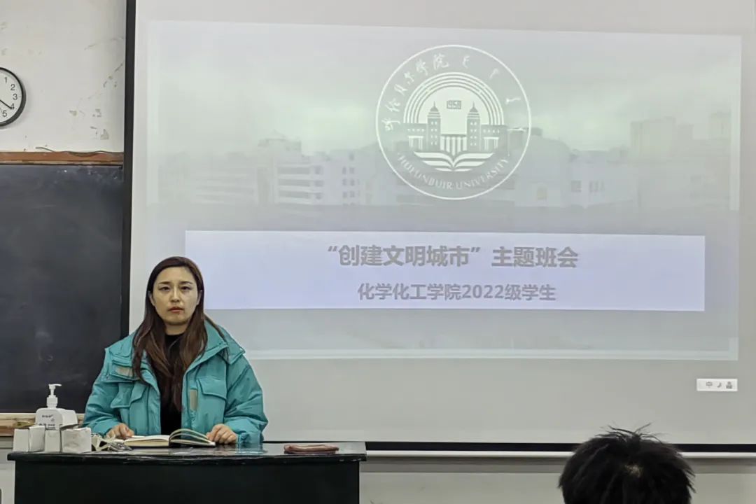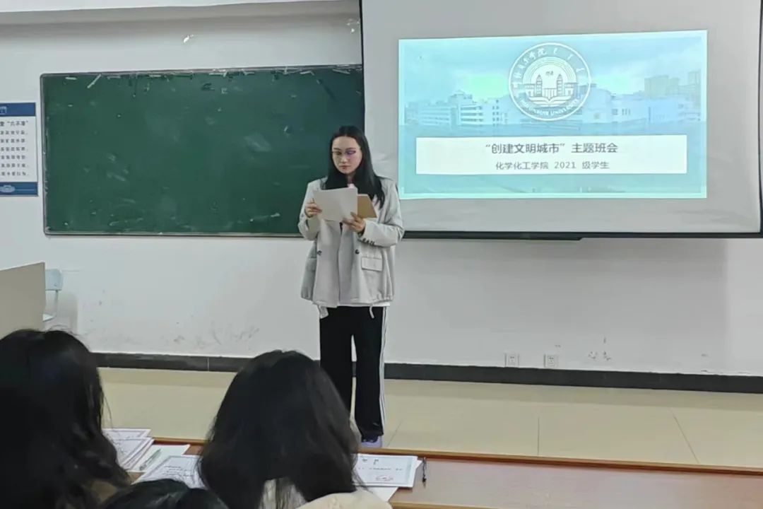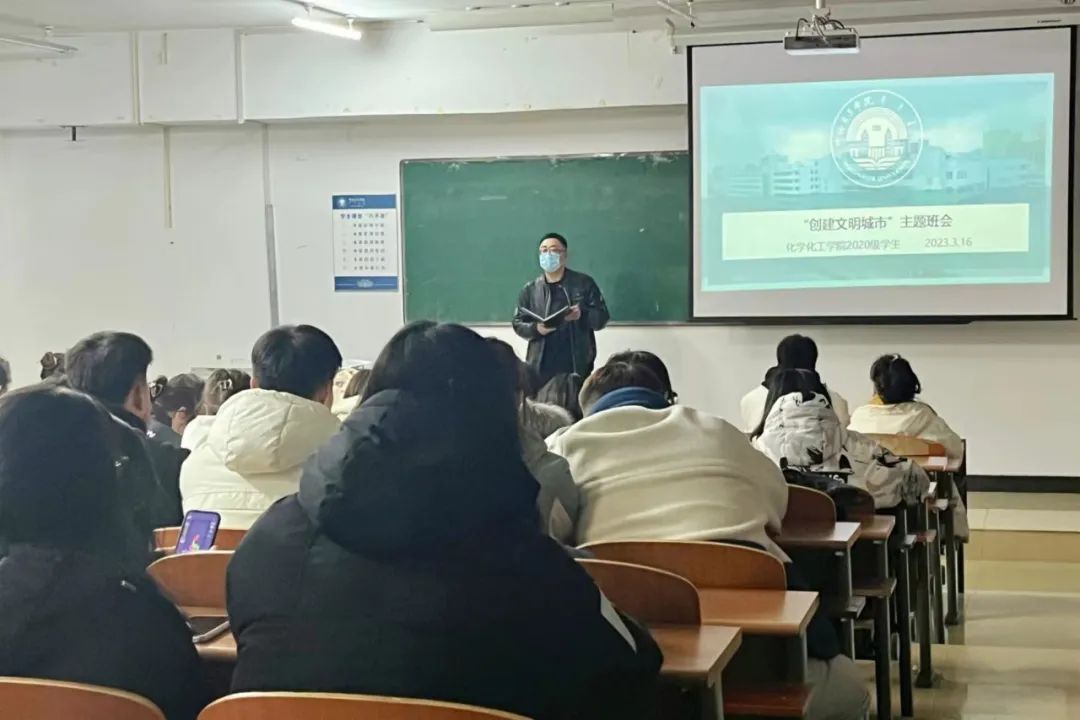 为助力创建全国文明城市工作,进一步推进公司创建和谐文明校园,2023年3月16日晚 ,化学化工公司召开“创建文明城市”主题班会,会议由团学办公室主任张一帆、团学办公室副主任、团总支书记闫微、辅导员孟庆永、杨云晖主持,化学化工公司全体员工参加。