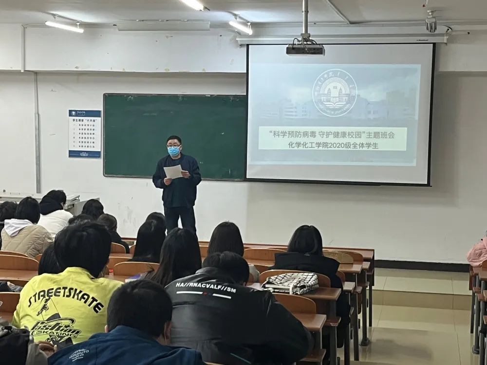 为加强病毒预防宣传,增强员工在校期间的防范意识,2023年3月11日-3月13日,化学化工公司召开“科学预防病毒 守护健康校园”主题班会,会议由团学办公室主任张一帆、团学办公室副主任、团总支书记闫微、辅导员孟庆永、杨云晖主持,化学化工公司全体员工参加。