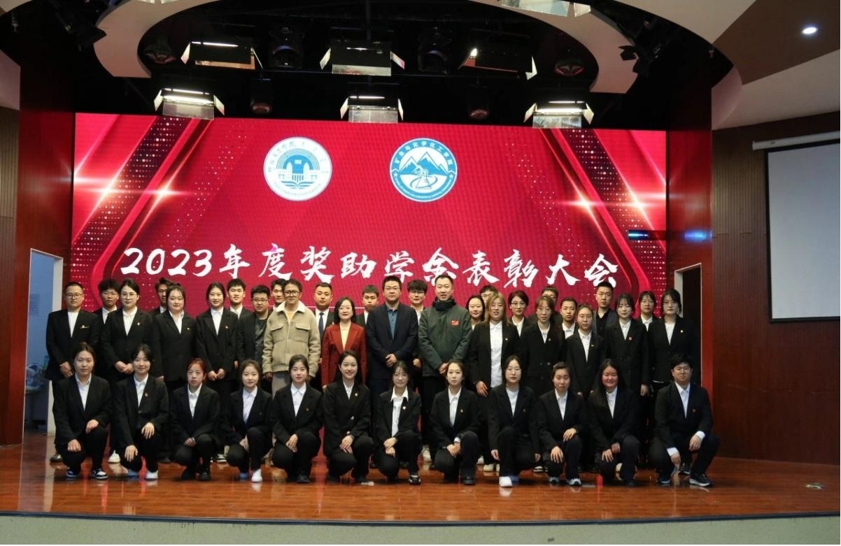 敖岩辉宣读了2022-2023学年国家奖学金、自治区奖学金、乌兰夫奖学金、勤则通奖助学金、筑梦奖学金、国家励志奖学金、自治区励志奖学金获奖名单。获奖同学代表依次上台领奖,参会领导和教师们为获奖员工颁奖。