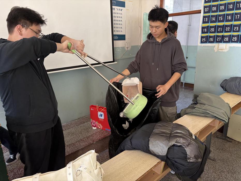 公司领导及辅导员下沉至各个区域,通过现场指导与细致检查,引导员工树立良好生活观念,共同守护安全有序的居住空间。历时几个小时,同学们齐心协力、辛勤付出,让每一处区域都变得整洁清爽,既改善了日常居住环境,也为校园风貌的提升增添了亮眼一笔。